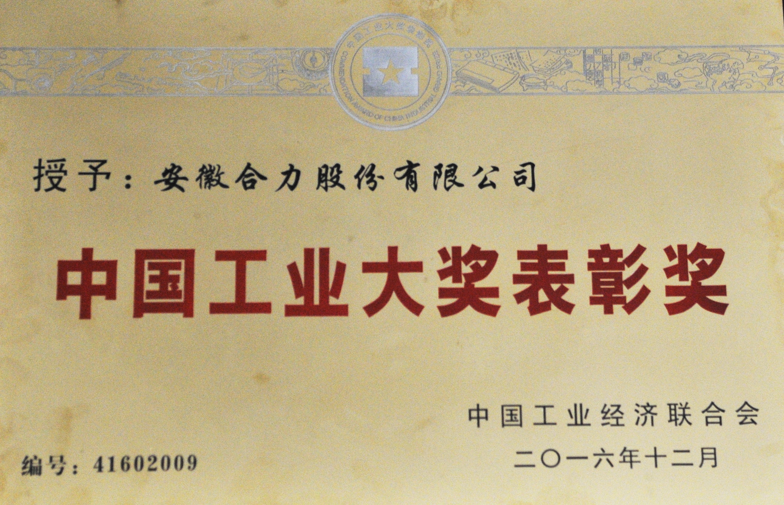 2016 安徽协力股分无限公司中国财产大奖惩处奖