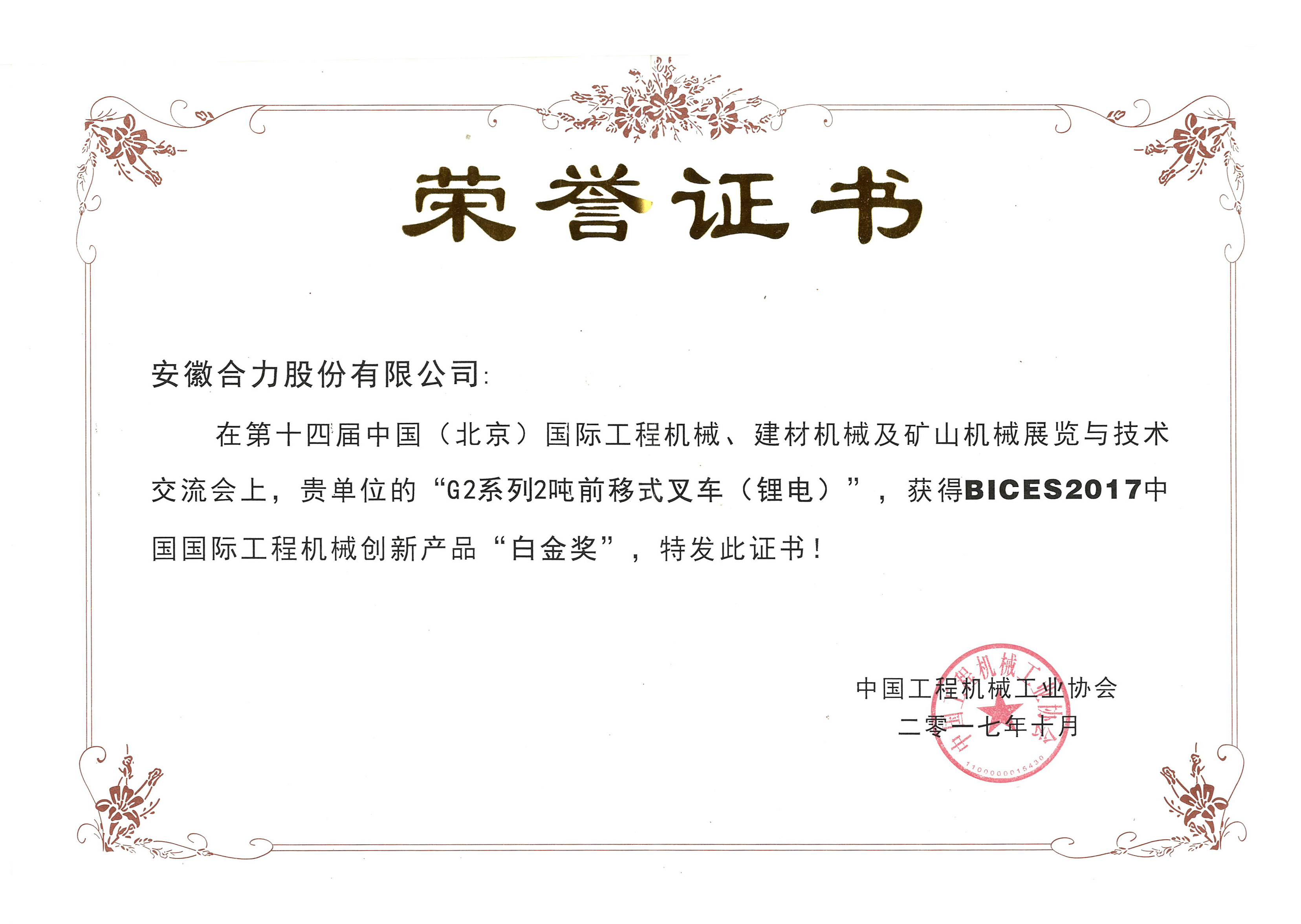 2017 中国国际机器白金奖G2-2吨前移式锂电